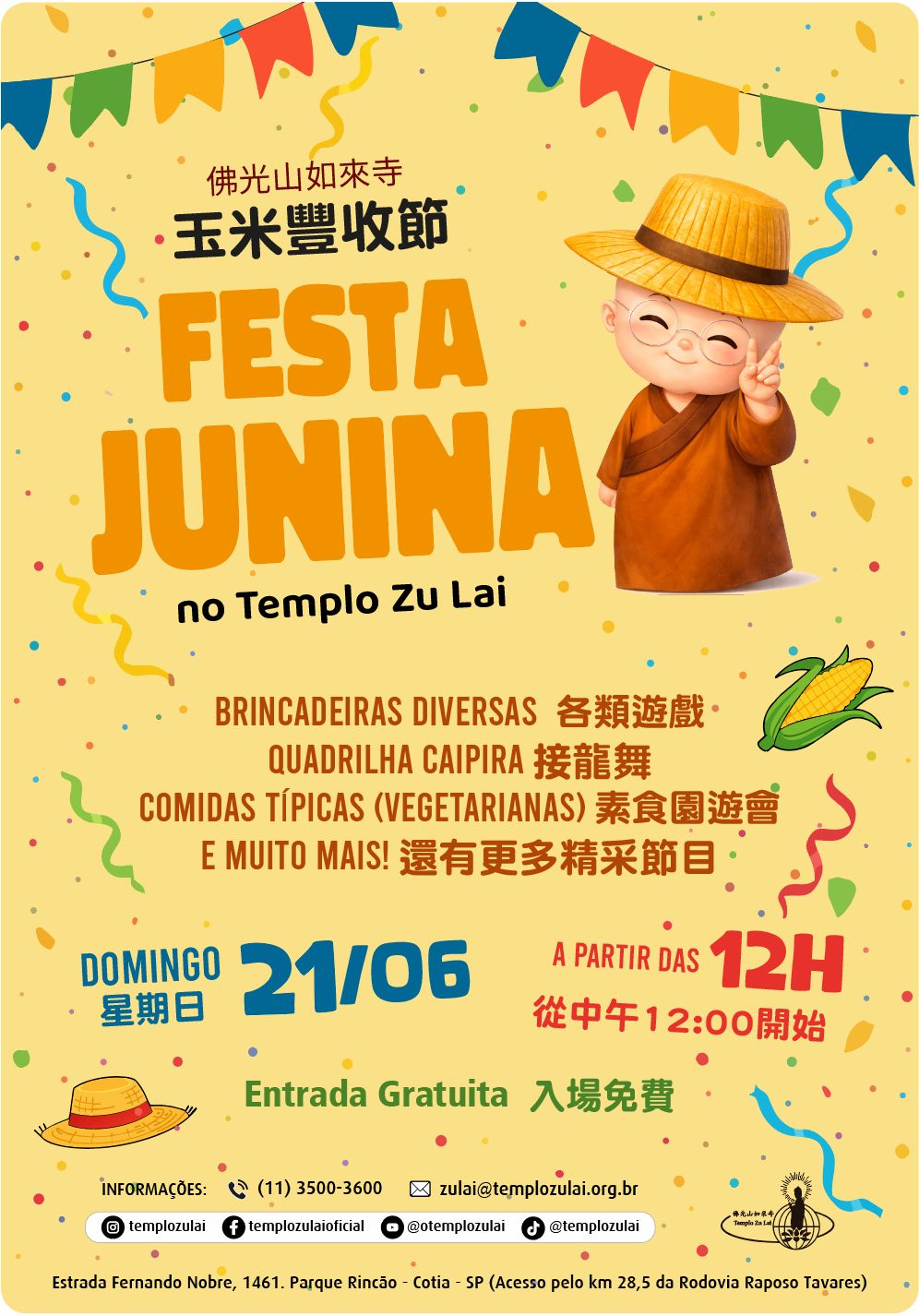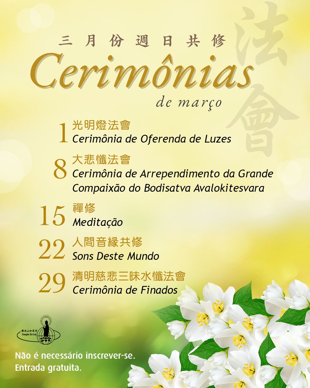 Atividades gratuitas. Não é necessária inscrição. Orientamos chegar com pelo menos 15 minutos de antecedência.