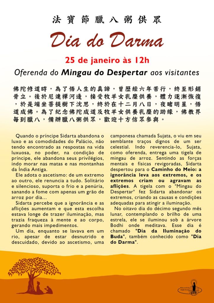 A tigela com o “Mingau do Despertar” fez Sidarta abandonar os extremos, criando as causas e condições adequadas para atingir a iluminação. No oitavo dia do décimo segundo mês lunar, contemplando o brilho de uma estrela, ele se iluminou sob a árvore Bodhi onde meditava. Esse dia é chamado “Dia da Iluminação do Buda”, também conhecido como “Dia do Darma”.